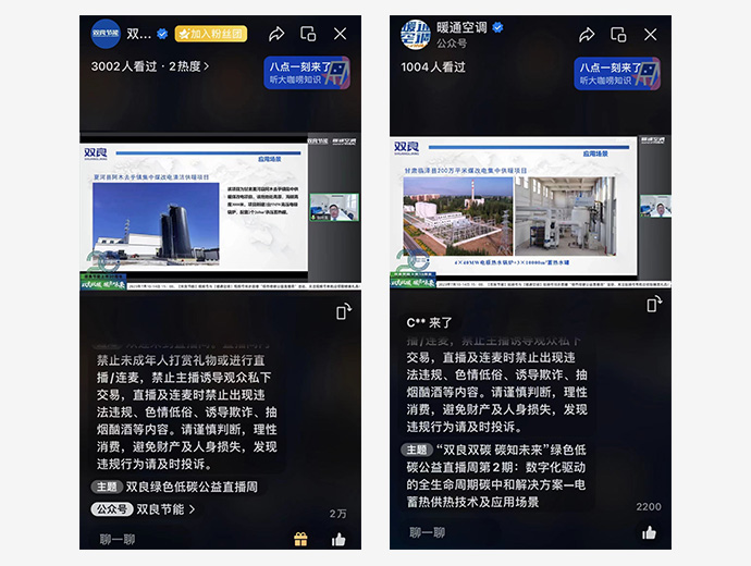 本場主題為《數字化驅動的全生命周期碳中和解決方案——電蓄熱供熱技術及應用場景》的“綠色低碳公益直播”累計觀看人數超4000人次,點贊數超20000次。未來,我們將繼續踐行碳中和使命,賦能低碳社會,用科技改變世界,以“人類命運共同體”的視角創造人類共同利益和價值。