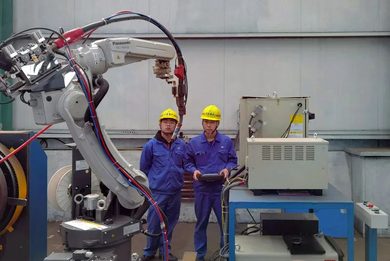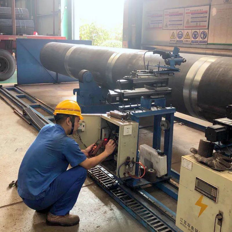 類似設(shè)備技術(shù)改造,吳昊參與完成的項目數(shù)不勝數(shù),比如雙絲埋弧焊焊接電器改造、所有埋弧焊機無線遙控改造、組隊滾輪架拼裝焊接改造、水管鍋筒焊接機器打磨、模式壁自動焊的電焊機改造等項目。就在剛剛他又和機修師傅們一起完成一項火管車間管頭打磨機自動化的改造,原來四五個人花費幾天才能完成的人工打磨,現(xiàn)在只要一人調(diào)運上管,按下啟動全部自動打磨好,省時省力節(jié)約成本。